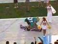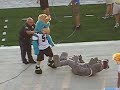 Description: JMU's mascot, the Duke Dog, gets tackled by Coastal Carolina's mascot. At least we won the game...45-10. |