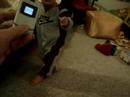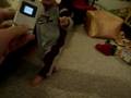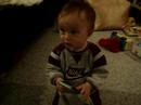 Description: Max takes a pictures of my sock, I try to get him to take another first step but he'd rather play with the phone. |